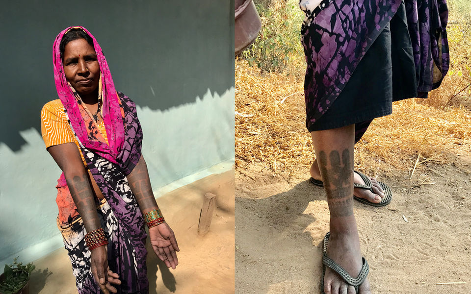 Godna or tattoo is an ancient art form practiced by Gond tribe of Chattisgarh in Central India. Godna has many motifs, each having a specific significance — some are curative in nature, while others are applied according to rites of passage in a woman's life — such as puberty, marriage and childbirth. The tattoos are highly valued for their powers of healing and their ritualistic significance. However in modern times, fewer people are getting tattoos done, as they migrate to cities for jobs where tattoos are frowned upon. Tattoo artists are struggling to survive in this fast-changing world. This project is then meant as a way for craftspeople and tribal artists to think in new ways — in a world where they are no longer able to sustain themselves solely through traditional networks and systems. We engaged with three tribal women artists, Ram Keli, Sumitra and Sunita to help make the typeface. Funds from the sale of the typeface will go back to help these and other craft and tribal communities.